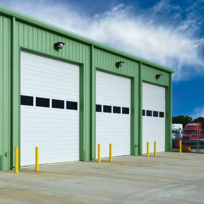 دربهای سکشنال (Sectional Doors): این دربها از پنلهای افقی تشکیل شدهاند که هنگام باز شدن، روی ریلهایی به سمت بالا حرکت کرده و در سقف قرار میگیرند. دربهای سکشنال فضای کمی را اشغال میکنند و برای پوشش دهانههای بزرگ در انبارها، سالنهای تولید، گاراژهای کارگاهی و مراکز لجستیک بسیار مناسب هستند. عایقبندی حرارتی و صوتی خوبی نیز ارائه میدهند.